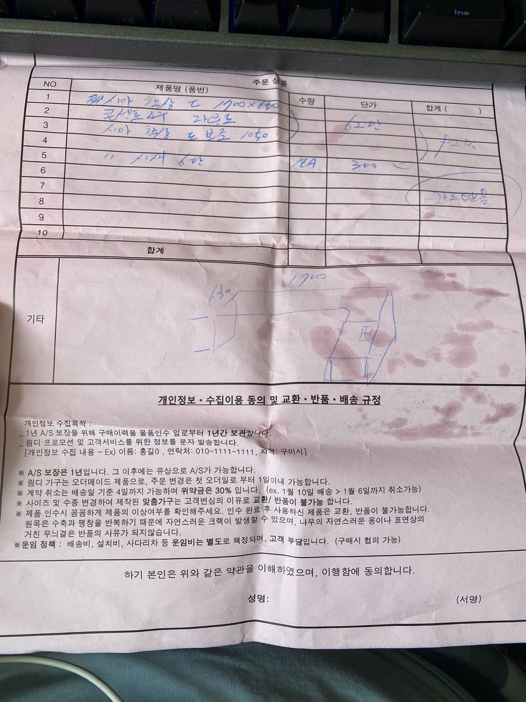 안녕하세요. 우선 제가 책상과 책장을 주문 제작을 의뢰했습니다. 일단 제가 요청한 사양과, 계약서 첨부 해놨습니다.. 어쨋든 매장에 방문해서 약 1시간정도 상담을 해서 저렇게 만들어달라고 했고 얘기는 다 됐습니다. 그리고 여기서 문제가 계약서를 작성하는데, 저렇게 적으셨고 그전에도 본인이 막 뭐를 적으시길래 저는 충분히 얘기를 했으니 계약서상에는 간편하게 적으시나보다.. 하고 말았습니다 그리고 몇주후 배송이 와서 책상, 책장 설치를 했는데 ㄱ에서 l 자 부분 책상의 폭이 50인겁니다.. 책장은 가로길이가 70으로 의뢰를 했는데 80으로 왔습니다. 그래서 방문이 안닫혀요 그래서 얘기를 해보니, 자기는 상담할떄도 50으로 들었다, 계약서상에도 50으로 적혀있지 않느냐. 계약서 대로 한건데 뭐가 문제냐 이러더군요(이 부분은 뭔소리를 하는지 모르겠고, 아마 본인이 적은거에 50이라고 적어놓은건지, 그냥 안적어놔서 원래 규격사이즈인 50으로 한건지는 모르겠습니다) 그래서 제가 제 계약서(첨부한 계약서)를 보여주니 그제서야 좀 꼬리를 내리더군요. 그러면서 어쩃든 그 계약서에도 사이즈가 명시는 안되어있으니 서로 책임이 있는거니 환불이 원래 안되는데 70%해주고, 책장도 다시 만들어주겠다고 하더군요. (책장또한 가로길이가 70으로 의뢰를 했으나 80으로 옴) 그래서 저는 "책장이야 되팔면 되니까 그러시는거고, 제 입장에서는 그냥 모든게 엉망으로 왔는데 왜 30%를 손해를 봐야되냐" 라고 말했습니다. 결국 본인 입장만 서로 얘기하면 결론이 안날듯하여, 사장님도 그 이상으로는 양보를 못하신다는거고, 저도 양보가 안되니 법적으로 다투어봐야겠다고 하고 일단 끊으니, 잠시후에 연락이 와서 책상을 중간에 커팅을 한다음에 다시 이어 붙이는 방식으로 다시 해드리겠다고 그렇게 하시겠냐 그래서, 제가 지금은 너무 바쁘니 생각해보고 연락드리겠다 했습니다. 이게 현재까지의 상황이고, 저도 책상도 지금 반품하고 다시 만들면 최소 1~2주인데, 그동안 책상없이 생활하는게 너무 막막해서 웬만하면 그냥 쓰자.. 책장이나 교체하고.. 생각했으나 이삿짐 정리를 하고 보니 도저히 폭 50으로는 모니터, 키보드, 내 눈 간의 거리가 좁아서 못쓰겠다 싶네요.. 아무튼 결론은 이 상황과 계약서로 미뤄보았을때, 법적인 다툼으로 가서 아예 다시 만들어달라고 할 수가 있을까요? 가능하다면 어떤 절차를 밞아야 하나요? 아니면 저에게도 과실이 있어서 그건 불가능할까요? 비슷한 경험이나 법률 전문가 분이 계시다면 도움좀 부탁드립니다. 새해 복 많이 받으시고 답변 미리 감사드립니다. 0