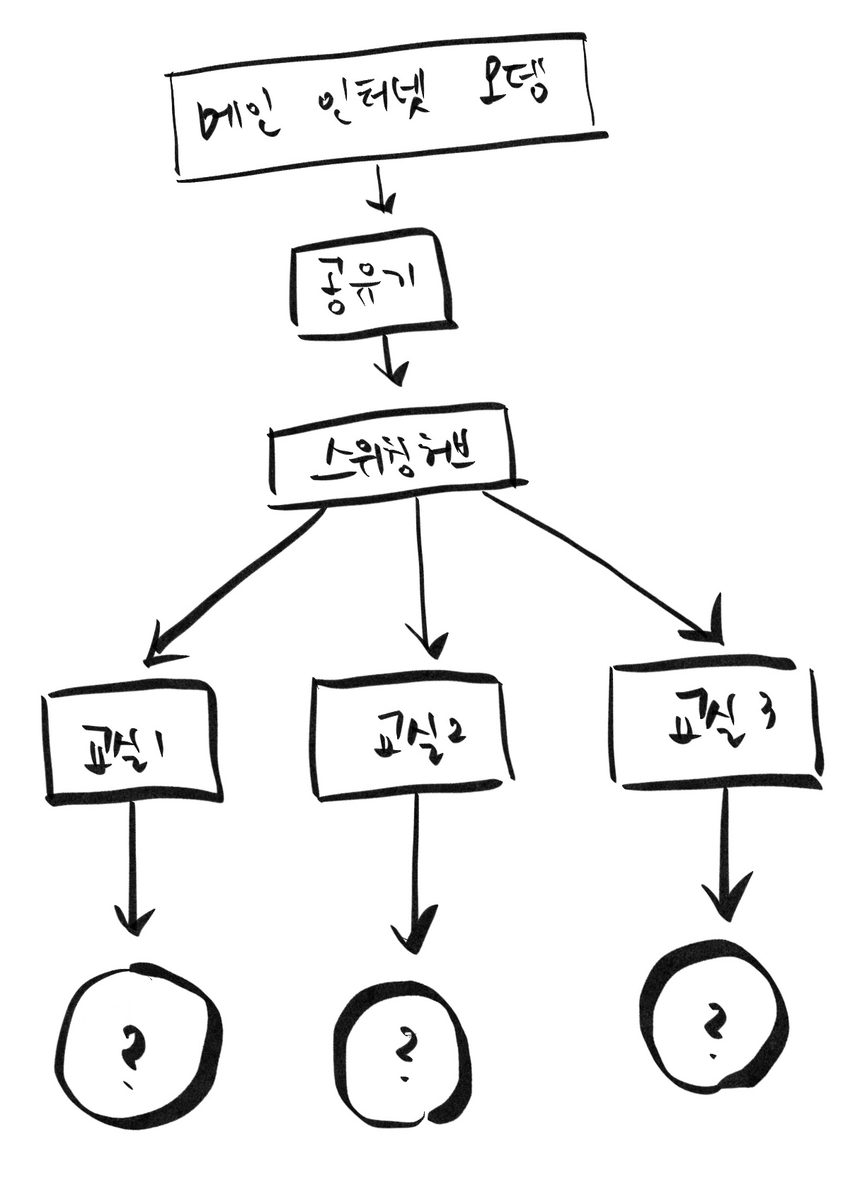 제가 똥멍청이인 관계로 다시 한번 질문 드립니다 ㅠㅠㅠ 이제 이 지긋지긋한 내부 인터넷 작업이 끝나가는 것 같기도 아닌 것 같기도 합니다. 많이 쳐내고 쳐내서 아래 사진과 같은 상황이 되었습니다. ![]() 각 교실 벽에 나온 포트로 유선 연결을 하면 인터넷 사용이 되는 것은 알고 있는데 와이파이가 필요한 경우, 어떤식으로 연결해서 써야 하는지 궁금합니다. 전에 알려주신 대로 공유기를 허브로 만들어서 연결하면 와이파이 설정이 가능할까요? 만약 가능하다면 공유기 -> 스위칭허브 -> 허브(와이파이사용) 이 되는건데 이런 방식이면 허브 -> 허브 -> 허브 이렇게 쭉 늘려갈 수도 있는것인지 궁금하네요 (이럴 일은 없습니다만..) 0