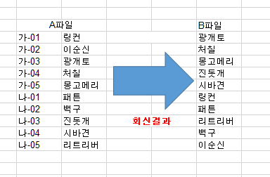 그래서 제가 엑셀 A파일을 보내고 회신B를 받았는데요