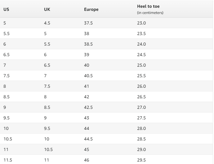 아마존 사이트에 표기된 치수를 보면  발끝에서  발가락까지 길이를 잰 치수 표가 있더라구요. (첨부1)