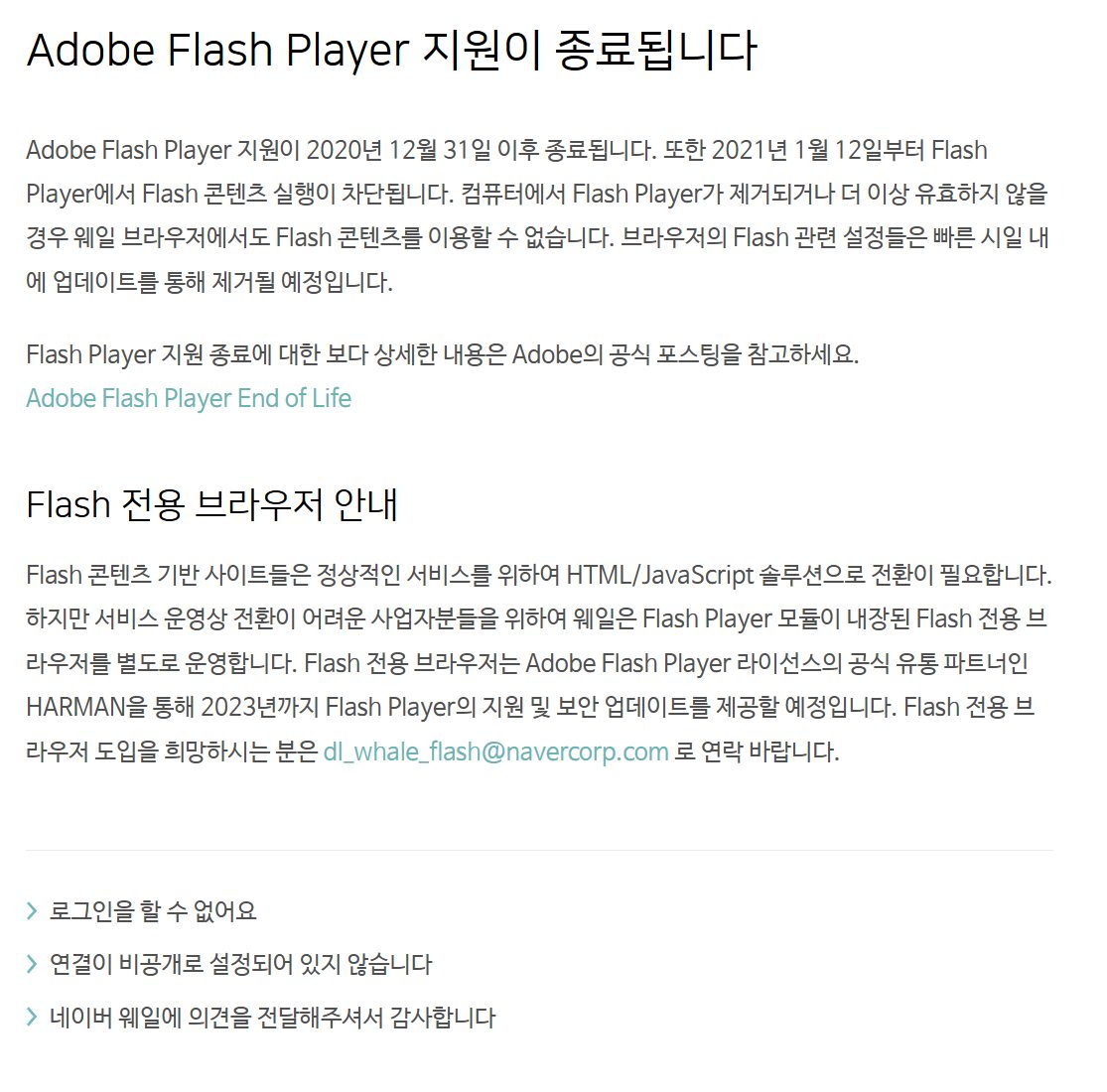 어느 외국 회사 사이트를 접속했더니 전부 사라지고 덩그러니 get adobe flash player 아이콘만 남아 있군요 T.T 하다못헤 contact us만이라도 따로 만들어 놓을 것이지... 하다못해 텍스트라든가 그런거라도 좀 볼수 있게 할수 없나요? 연락처도 없고 해서... 회사가 망한걸까요? 제품은 계속 나오긴 하던데 0