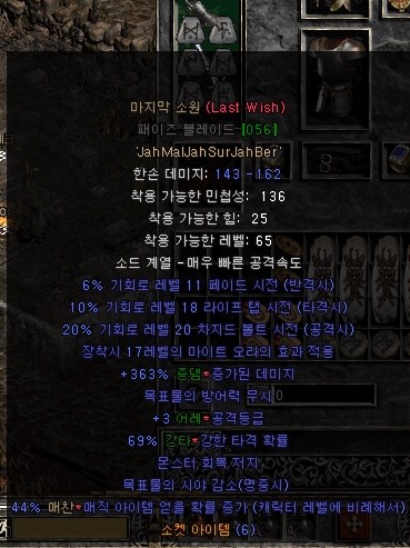 월,화 이틀간 해머딘을 열심히 키웠읍니다. 레벨 97을 찍었읍니다. 요르단링이 팔렸다는 메시지가 보여서 하나를 팔았더니 등장하였읍니다. 근데 이게 왠걸;; 아무리 해머질을해도 피 10%만 깎이고 전혀 줄어들지를 않읍니다. 그래서 스킬 초기화를하고 질을 찍고 무기를 교체하여 잡았읍니다. 해머 딜이 대충 12K 언저리 나오는데 딜이 안들어가욧!! ㅠㅠ 해머딘은 횃불 + 애니참 퀘스트에 적합하지 않은가요? 앵벌소서, 조폭넥은 쉽게 잡던데 ㅠ 0