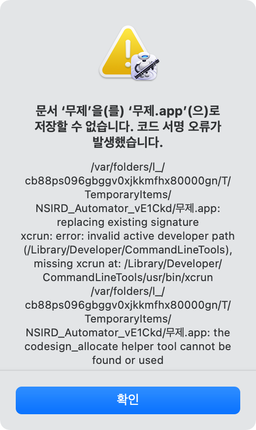 예전엔 잘 되었던 것 같은데 빅서로 업뎃한 이후에 그런건지 만들고 저장하려고 하면 코드 서명 오류라고 뜨면서 저장이 안되네요ㅠㅠㅠㅠ