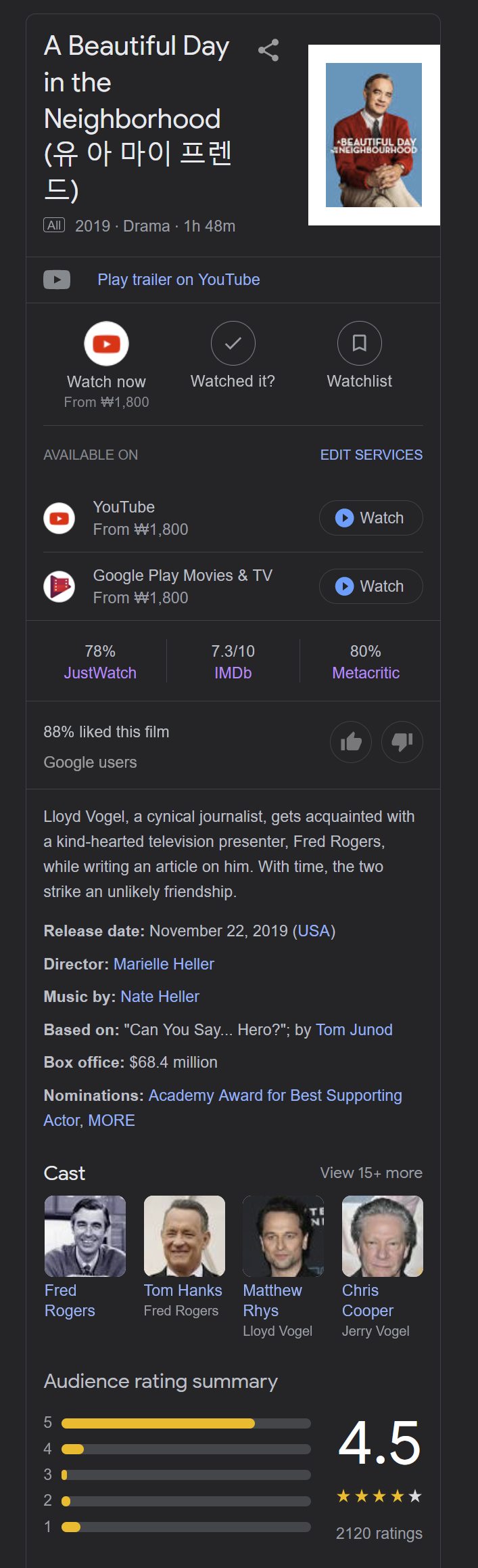 요새 ott 서비스 한두개씩 이용하는 분들 많을텐데 이게 어디에서 뭐가 제공되고 있는지 전체적으로 알려주는 곳은 따로 없나요? 매번 각 ott(저희집은 넷플 웨이브 티빙 예전에는 왓챠까지 구독 중입니다 인터넷 티비는 올레 포함) 돌아다니면서 보고 싶은 영화 찾으려니 영 귀찮더라구요 제가 네이버나 카카오면 국내 오티티로 시청가능한 작품들 목록을 제공하는 걸 할텐데 말이죠(tv편성표처럼) 각 ott사업자들이 원하지 않아서 안하는 건지 아님 굳이 돈도 안되는거 편성표 서비스 할 필요가 없는건지.. 아님 제가 혼자 못 찾고 있는건지 모르겠더라구요 1