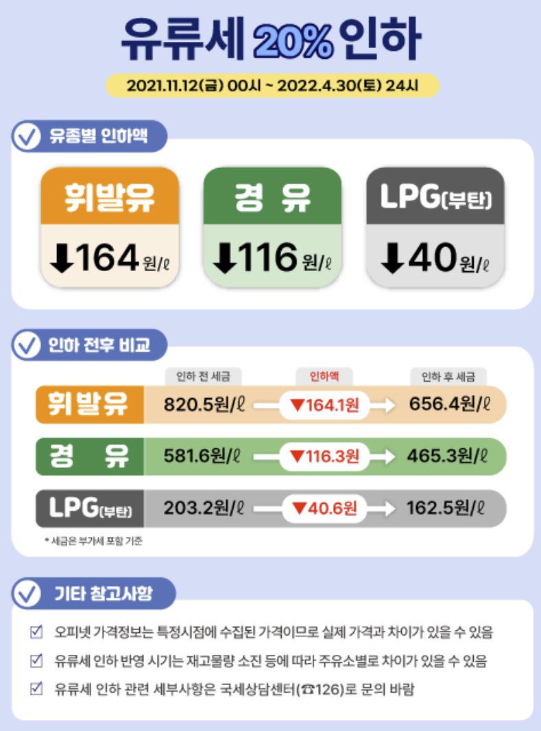 안녕하세요 김치찌개입니다! 오늘 저녁 일반주유소에서 기름 만땅넣었는데요! 집에 도착하고 뉴스를 보니 내일부터 유류세 인하를 한다는 기사를 접했는데 바로 시행되는건가요??헉.. 0