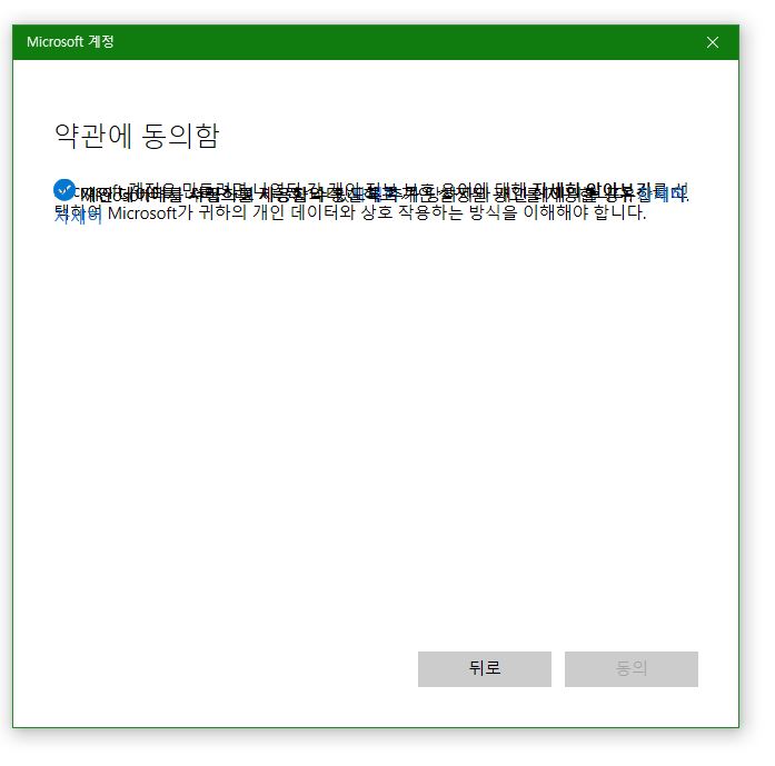윈도우 10에서 로컬 사용자 계정을 추가하려고 하는데 저 화면에서 넘어가지를 않습니다. 다른 PC로 해보니 저기서 총 3가지 항목의 약관을 확인해야 다음으로 넘어갈 수 있는데, 저는 저 화면이 깨져서 약관 확인이 불가능한 상황입니다. 업무용 PC라서 포맷이나 시스템복원은 불가능한 상황인데 이거 어떻게 해결방법이 있을까요? 구글링을 해봐도 이런 증상에 대한 내용은 전혀 없네요..ㅠㅠ 0