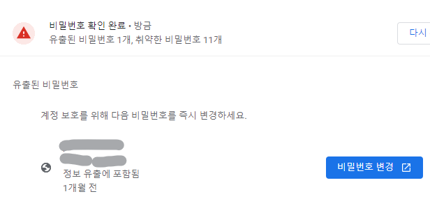 가끔 "유출된 비밀번호 OO개" 관련 메세지가 뜨는데..