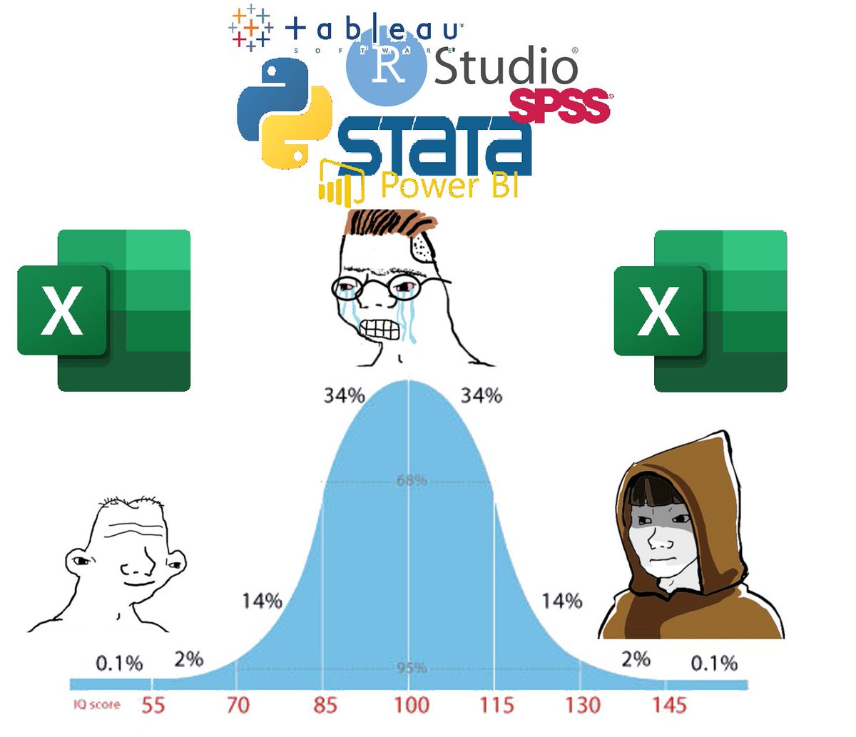 짤 요청드립니다! 초보와 고수는 액셀을 사용하고, 그래프가 표준 정규 분포로 되어 있는 이미지였어요. 중수는 다른 많은 데이터 프로그램을 사용하는거였구요. 확인 부탁드립니다! 0