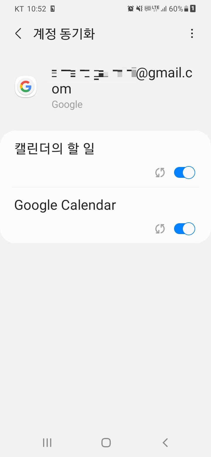 첨부화면처럼 기존에는 구글메모, 지메일 등이 동기화되고 있다고 떴던 화면에 구글캘린더만 보이고 다른 어플들이 안 보여서요...;