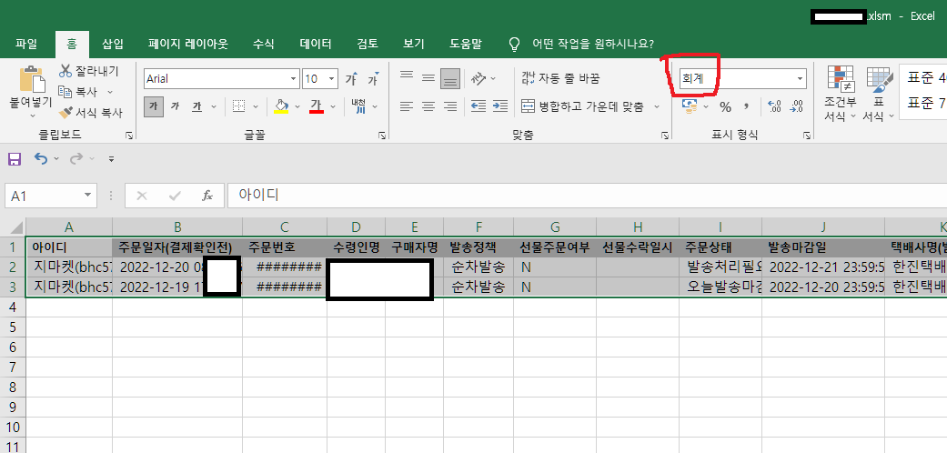 네이버 스마트스토어에서 받은 엑셀파일을 복붙해도