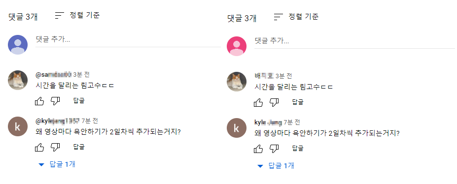 몇몇 유튜브 댓글 캡쳐들 보면 핸들 말고 닉네임으로 표시되던드