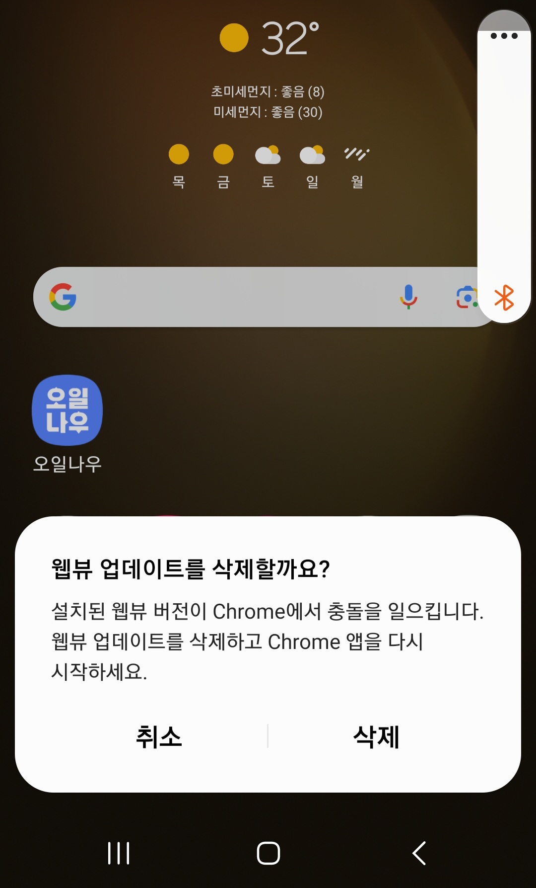 크롬이 선빵날려서 웹뷰 지우라니까