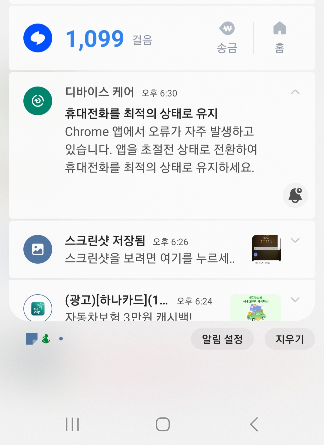 안드로이드(삼성 디바이스케어?)가 크롬 초절전으로 바꾸고 쓰지말래요...