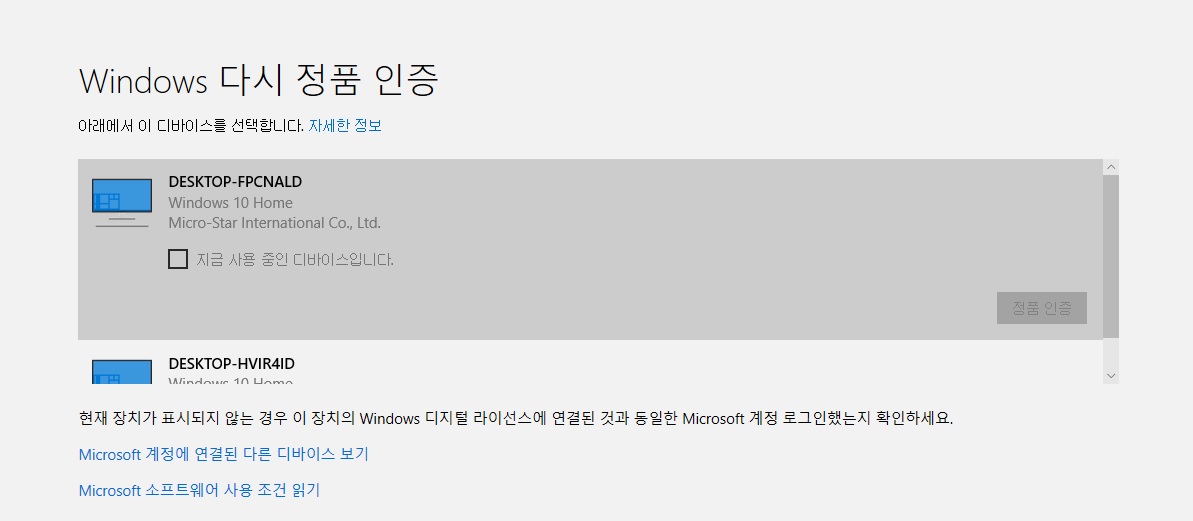 사이트에서 하드웨어 변경우 윈도우 다시 정품 인증하기 까지 찾아서