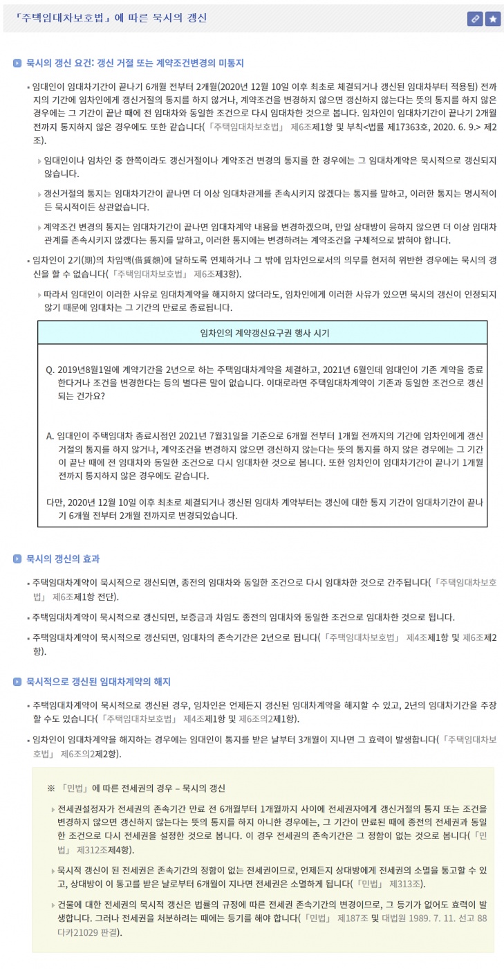 Subject   주택임대차계약의 묵시적 연장 조건?