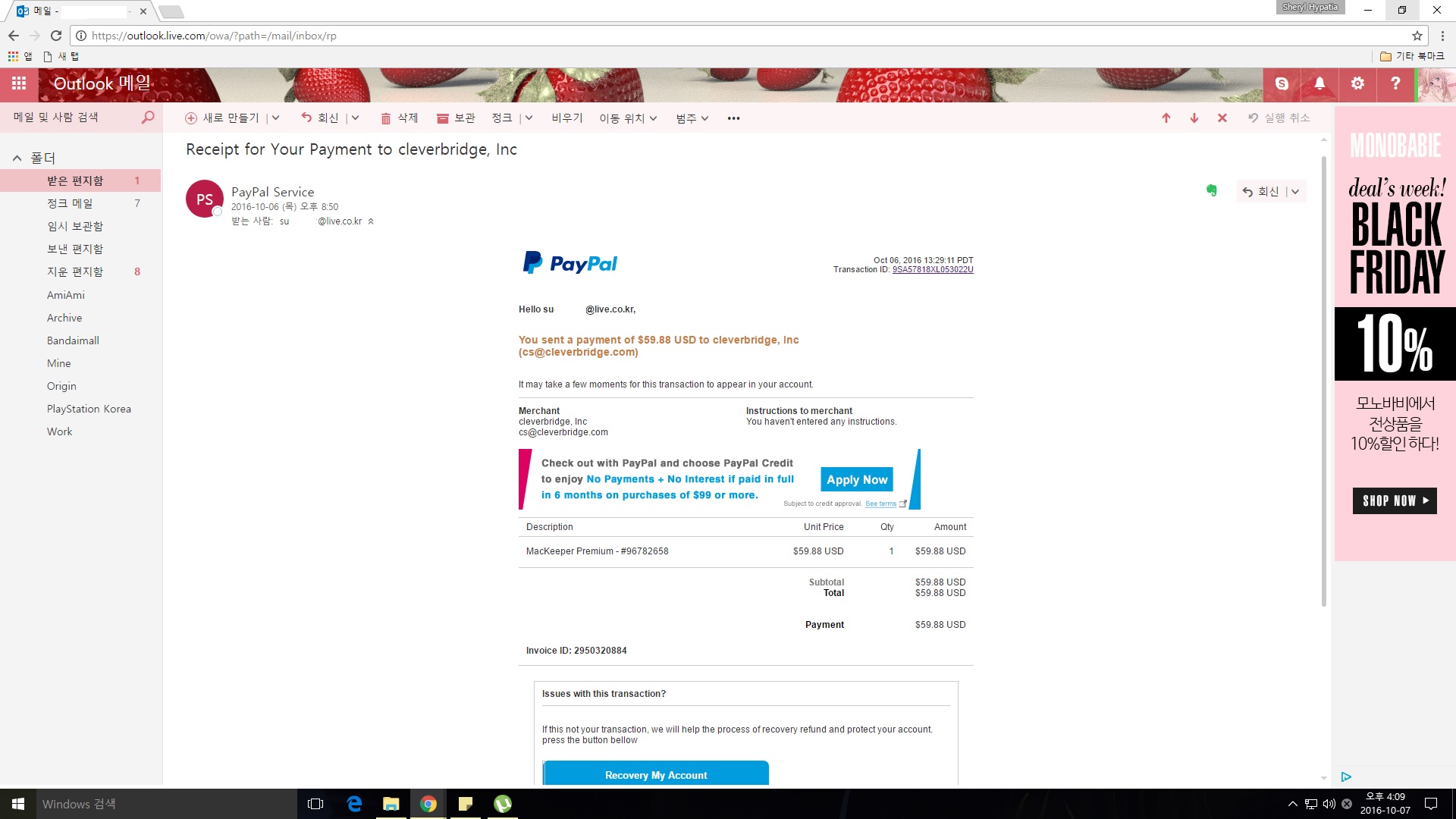 페이팔에서 메일을 받았습니다.