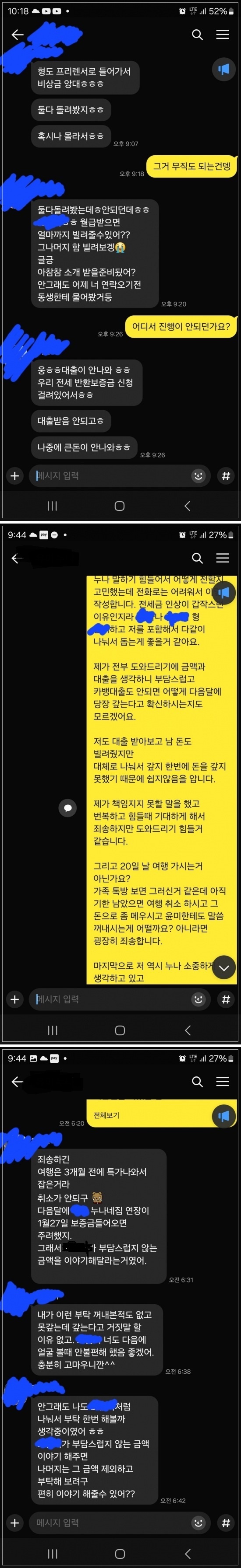 '저한테 기어코 빌리겠다, 일단 저부터 해결한다 이런 의지'를 숨기지않고 변하지 않는 태도로 일관되게 보여서 많이 속상합니다.