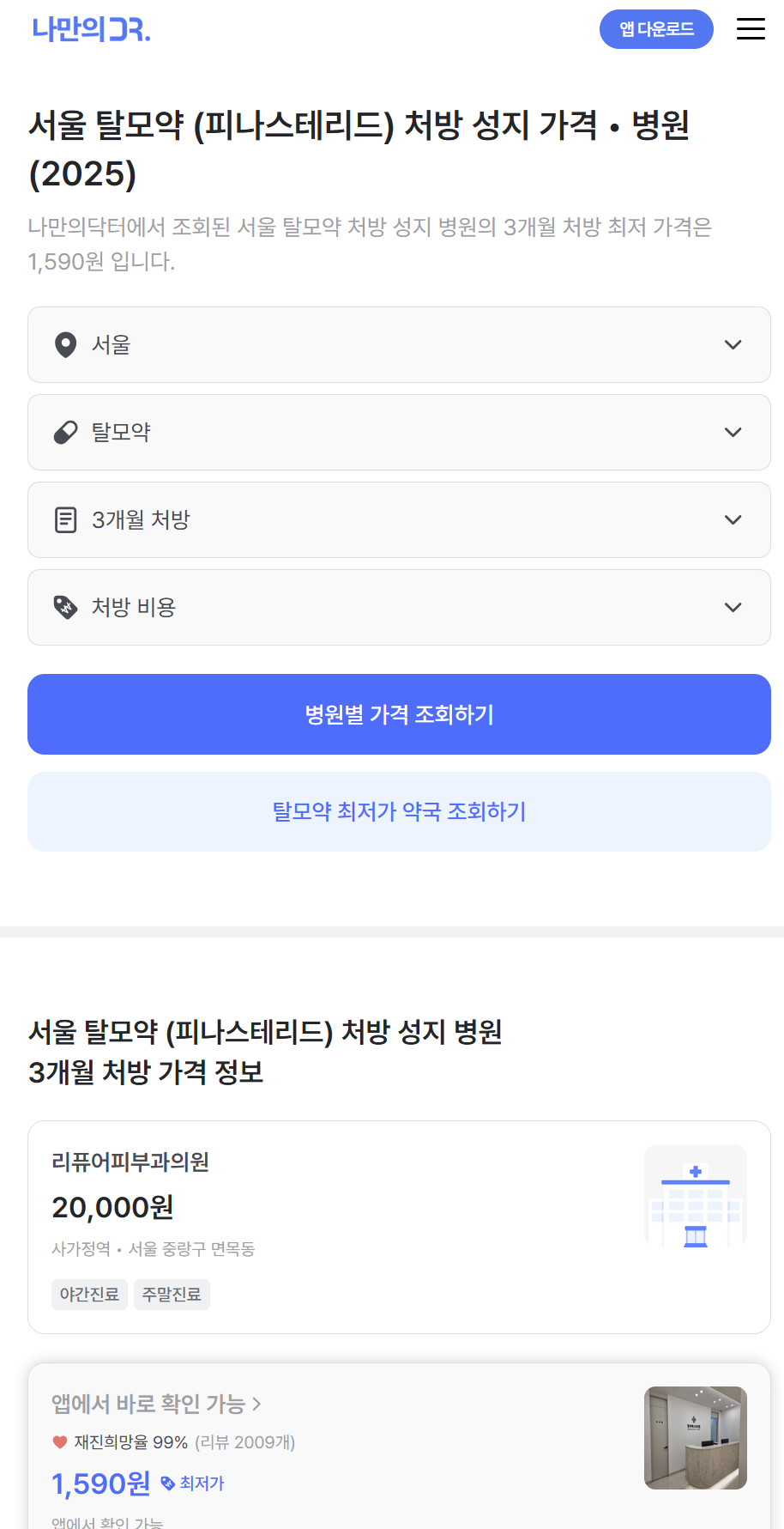 비급여 진료비용 공개 항목에 따로 탈모약 처방이 있지는 않아서, 건강보험심사평가원 같은 곳에서 병원별로 찾아보실 수는 없고, 비대면 진료 플랫폼이나 인터넷에서 지역 성지(?) 병원 같은 곳 찾아서 비교하셔야 할 것 같습니다.