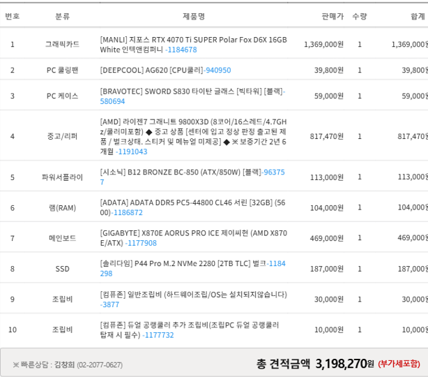 데스크톱 견적은 처음짜보는거라 모르는게 많네요.