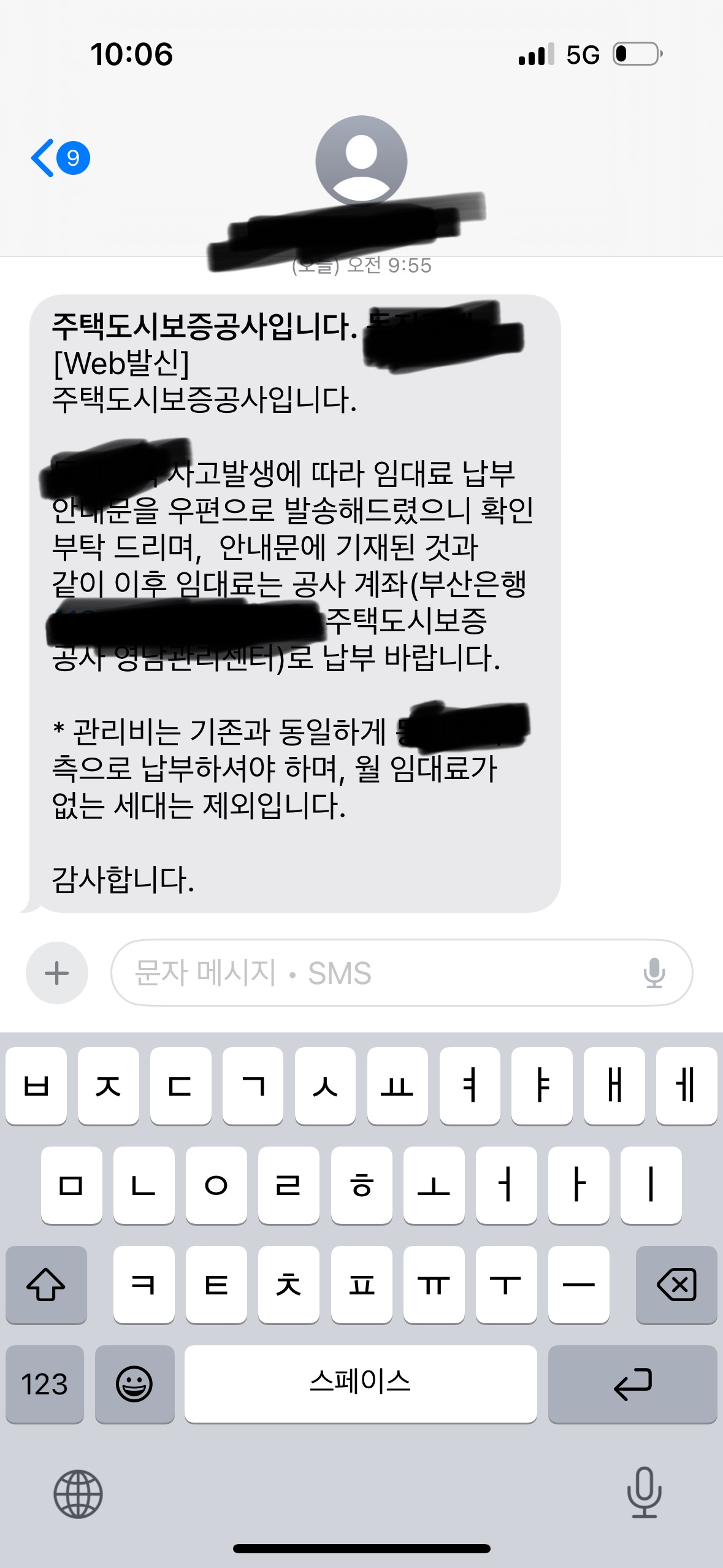 Subject   주택도시보증공사 사고발생 통보 문자 수신 관련