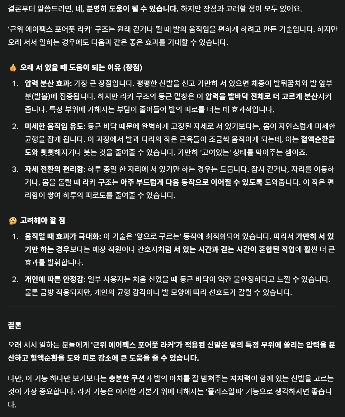 걷거나 뛰면 편한데 서있으면 발이 힘들고 아픕니다