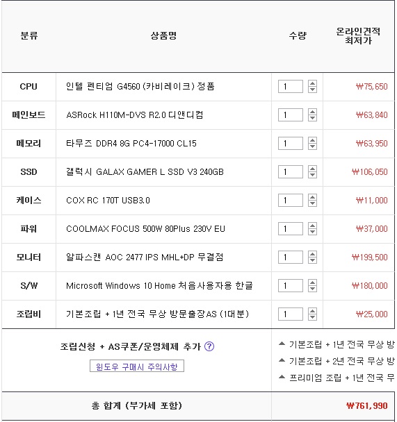 제가 데스크탑 하나 맞추려는데 적절한지 알려주시면 감사하겠습니다