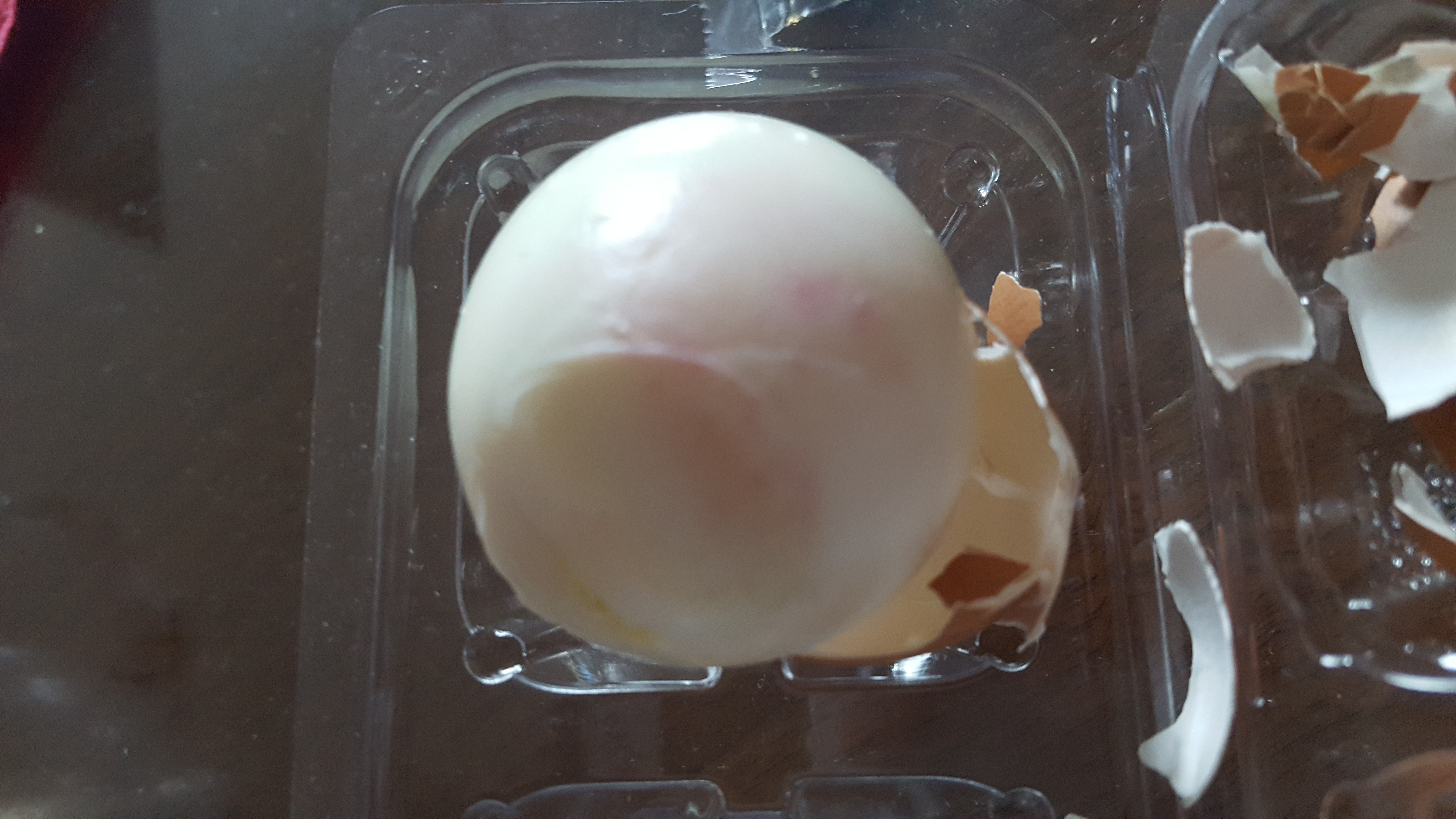 편의점에서 산 계란인데 계란을 까보니 빨간 부분이 있네요. 손에서 뭍은 건 아닙니다. 도대체 왜 그런 걸까요?