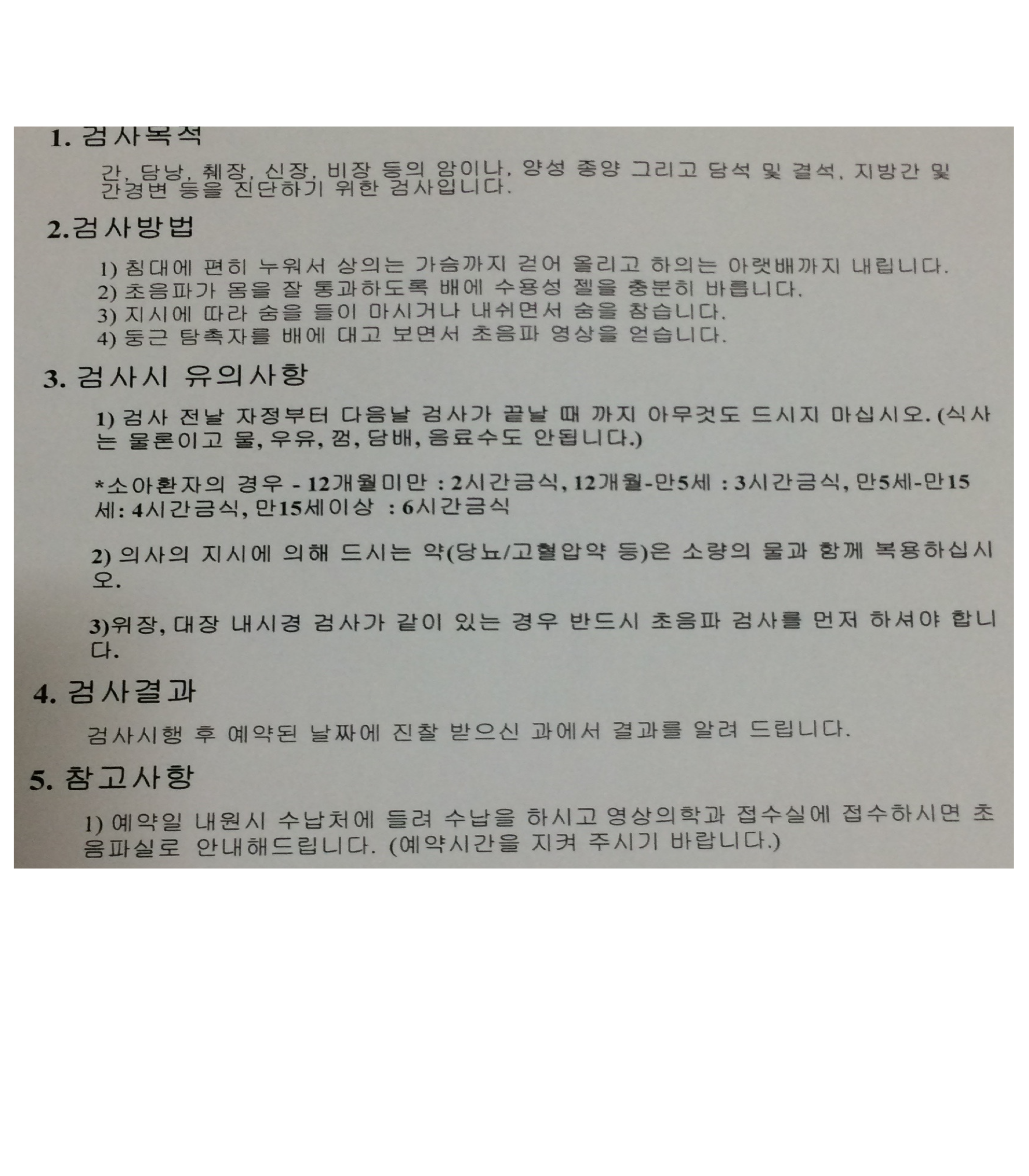 Subject   [의료넷] 상복부 초음파 검사 관련 금식 질문입니다.
