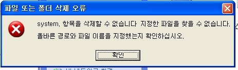 안녕하세요. 제목 그대로입니다. 폴더 하나가 삭제를 누르면 저런 창이 뜨면서 삭제가 안되네요. unlocker ??라는 프로그램을 사용해도 마찬가지네요. 혹시 이럴 때 어떻게 하는지 아시는 분이 계실까요? 답답한 마음에 글을 올려봅니다. 그럼 좋은 하루 보내세요. 0