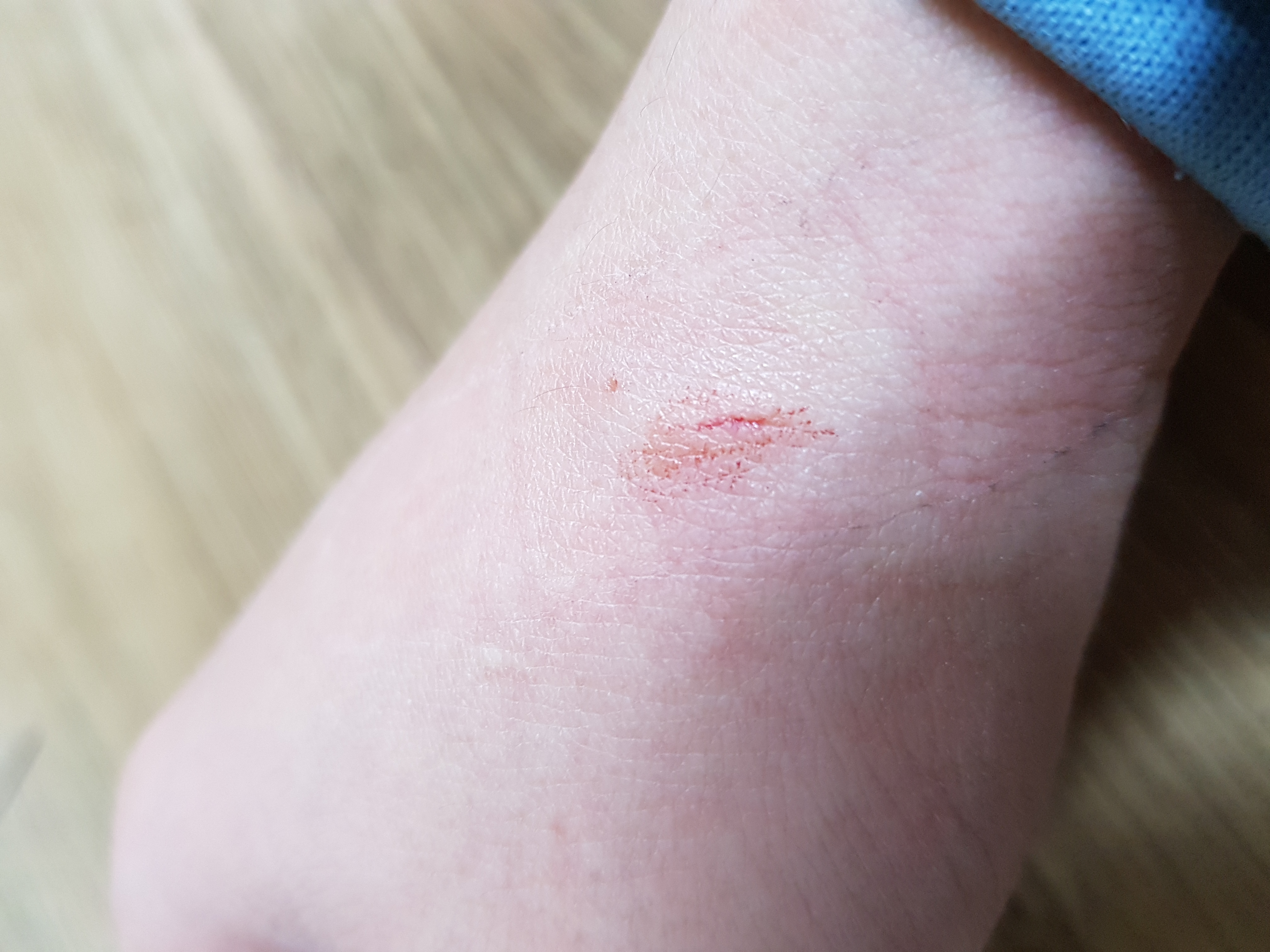 바로 흐르는 물에 씻고 소독솜같은게 있어서 닦고 밴드 붙였습니다 그게 1시간 전이고 현재 상태는 이렇네요