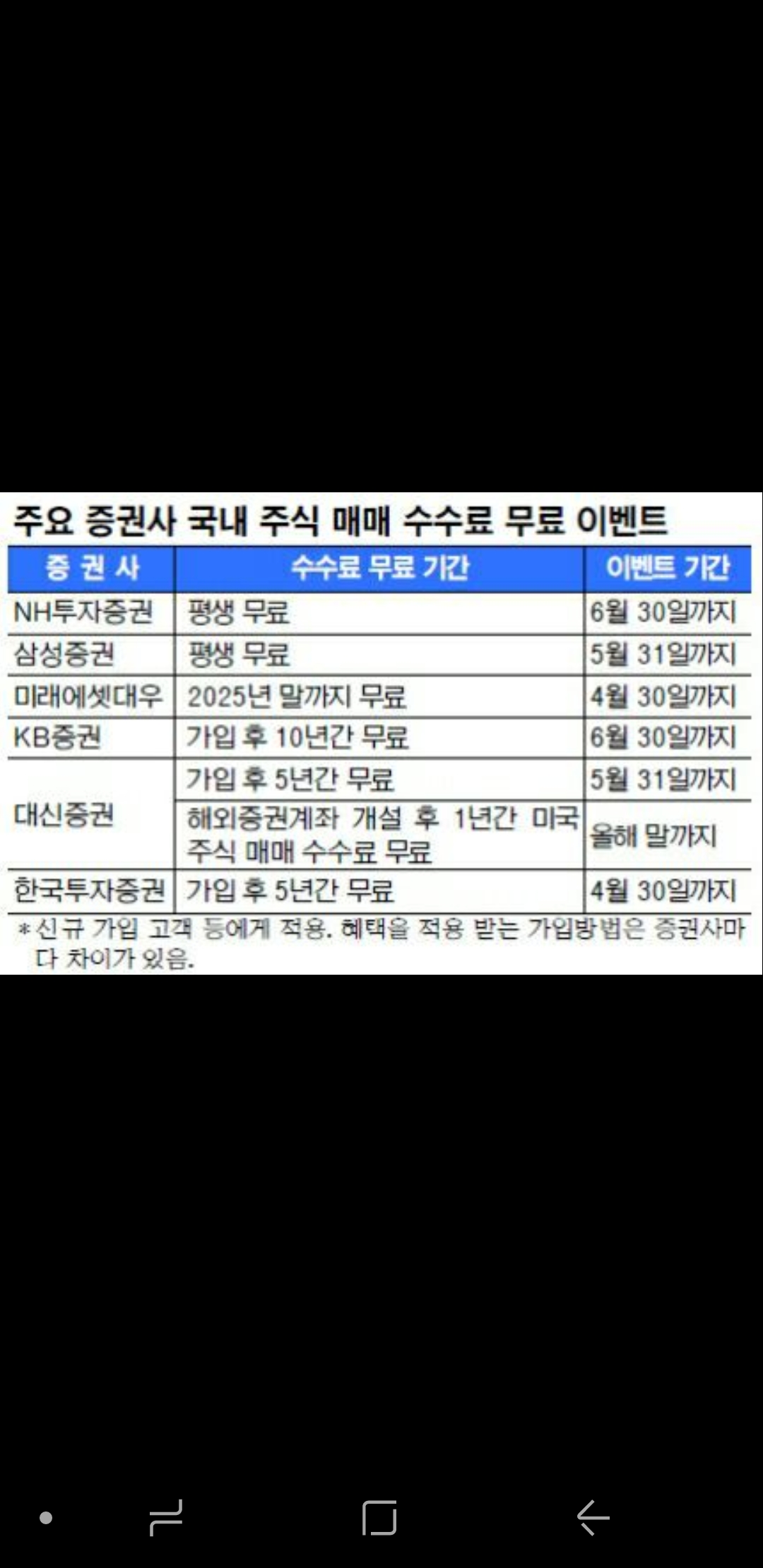 그동안 주식 투자해야지 해야지 맘만 먹고있다가 이 사진에 나온 내용 보고 드디어 시작해야겠다고 마음먹었습니다 주식투자라고는 한번도 안해본 초짜인데요 100만원 정도의 소액투자로 시작해서, 점점 투자금 투입을 늘려나갈 계획입니다. 평생 매매수수료 무료라는 삼성증권과 nh투자증권 둘중에 하나로 마음이 기울었는데요 두 증권사 사이의 장단점이나 어떤 증권사가 더 좋은지 추천해주시면 감사하겠습니다 0