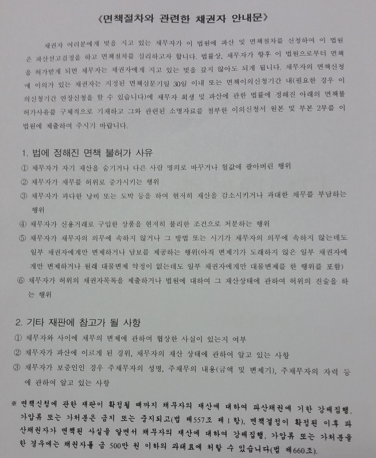 Subject   개인파산 신청에 대한 채권자의 대응 방법