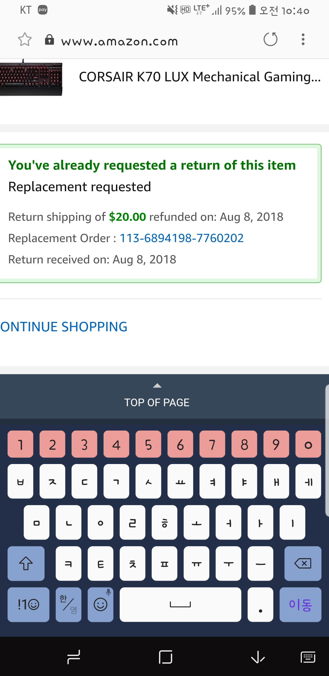 직구한거 물건이 잘못와서