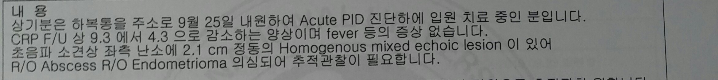 최근 첨부된 이미지와 같은 진단을 받았습니다. 담당 교수님으로부터 자궁내막종인 경우 경과를 지켜보다가 악화될 경우 복강경 수술을 해야한다고 들었는데요. 구글링을 해보니, '경화술'이라는 방식으로 몇몇 산부인과에서 제거수술을 하고 있더라고요. 병원 홈페이지에는 복강경보다 회복기간이 길고 난소에 나쁜 영향을 줄 위험도 적다고 되어있고요. 아무래도 환자 입장에서는 끌리지만, 개인병원 몇 곳에서만 사용하는 방식인 듯해서, 안전한지 여쭙니다. 감사합니다.♥ 0