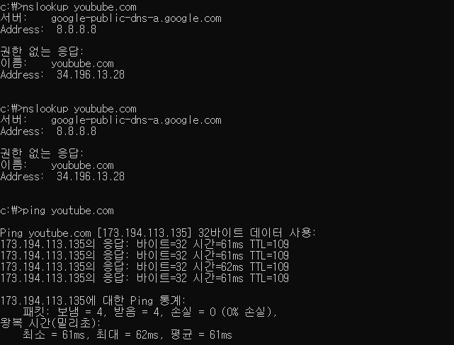 nslookup 이나 ping 을 쳐보면 정상으로 IP가 나오네요.