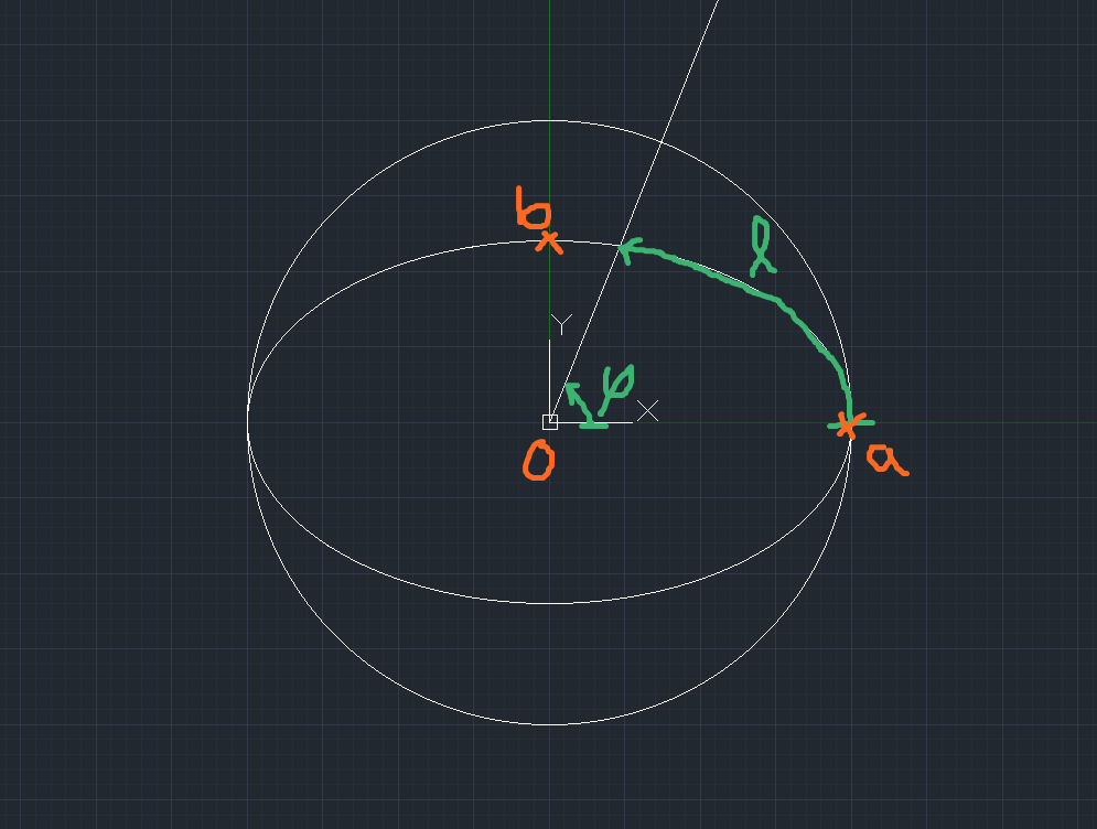 장반경과 단반경이 주어진 타원이 있을 때 중심각과 먼 꼭지점으로부터의 둘레길이 사이의 수식관계를 알고 싶습니다.