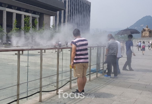 혹시 쿨링포그라고 아시나요? 위에서 물을 뿌려서 물의 기화열로 주변을 냉각하는 장치인데요