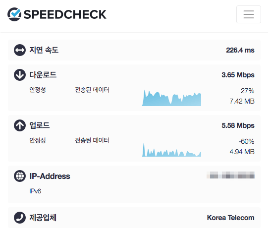 | Subject | 인터넷 속도가 느린거 같습니다. |