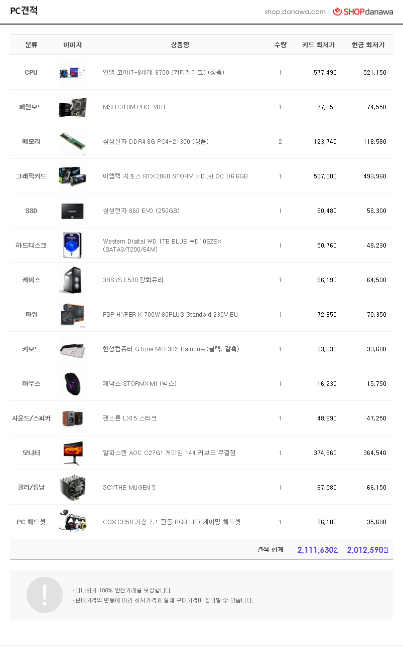 | File #1 | 2019.02.18_PC견적.png (129.0 KB), Download : 7 |