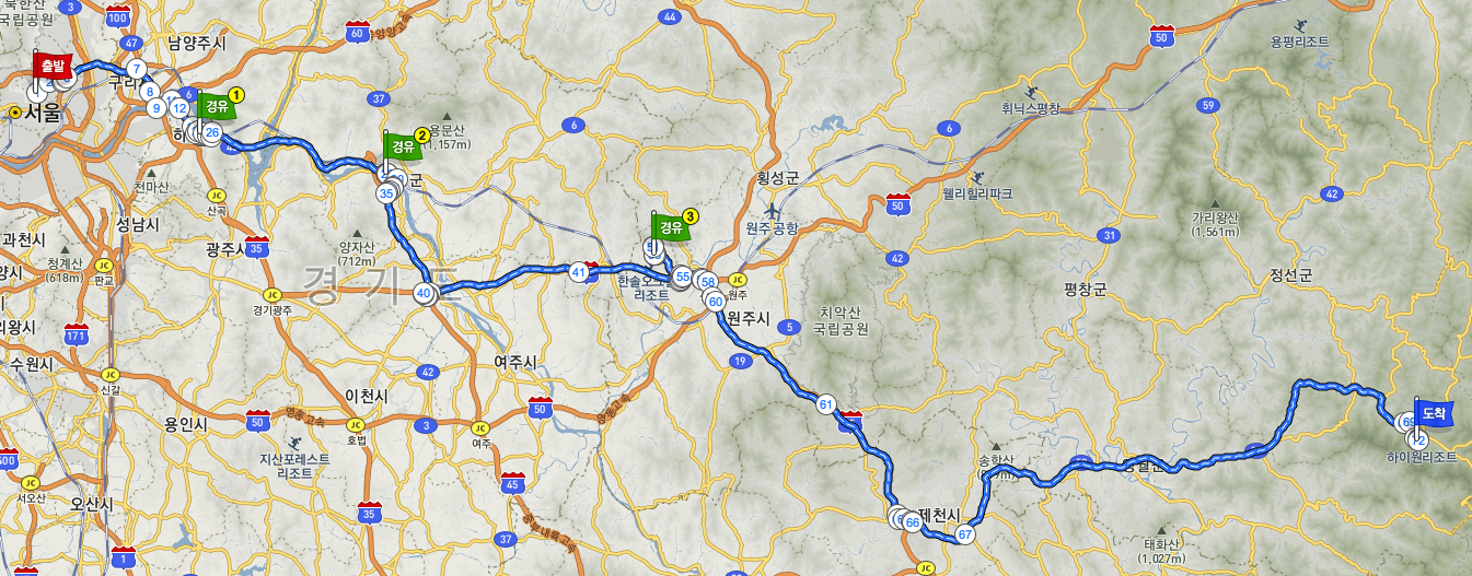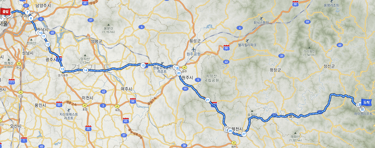 금토로 하이원리조트에 다녀옵니다. 첨부한 루트로 지나가게 될 것 같습니다. 어른 다섯 아이 둘이 차 2대로 다녀올거 같은데요. 중간에 가면서 들러서 놀다갈 여행지를 찾고 있습니다. 들러서 1~3시간 보내고 갈 곳이면 좋을 것 같은데요. 갈만한 곳 있을까요? 0