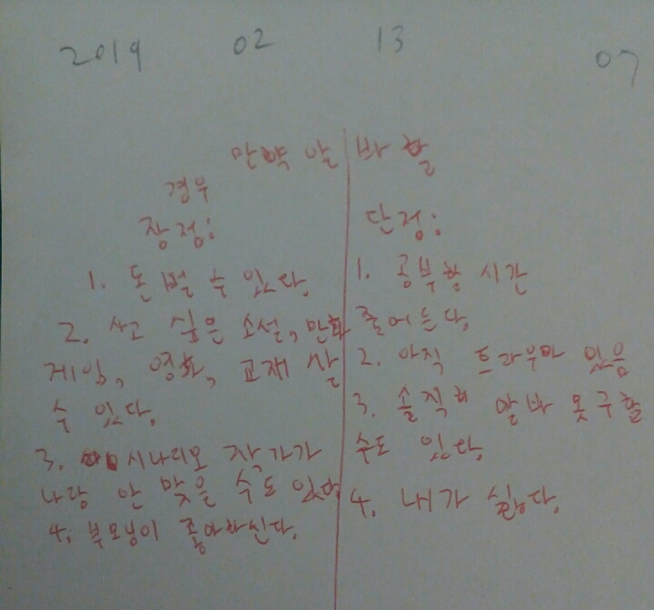 위에 저런 식으로 "만약 알바할 경우 장점, 단점" 같은거 써놓고 비교해보긴 하고...