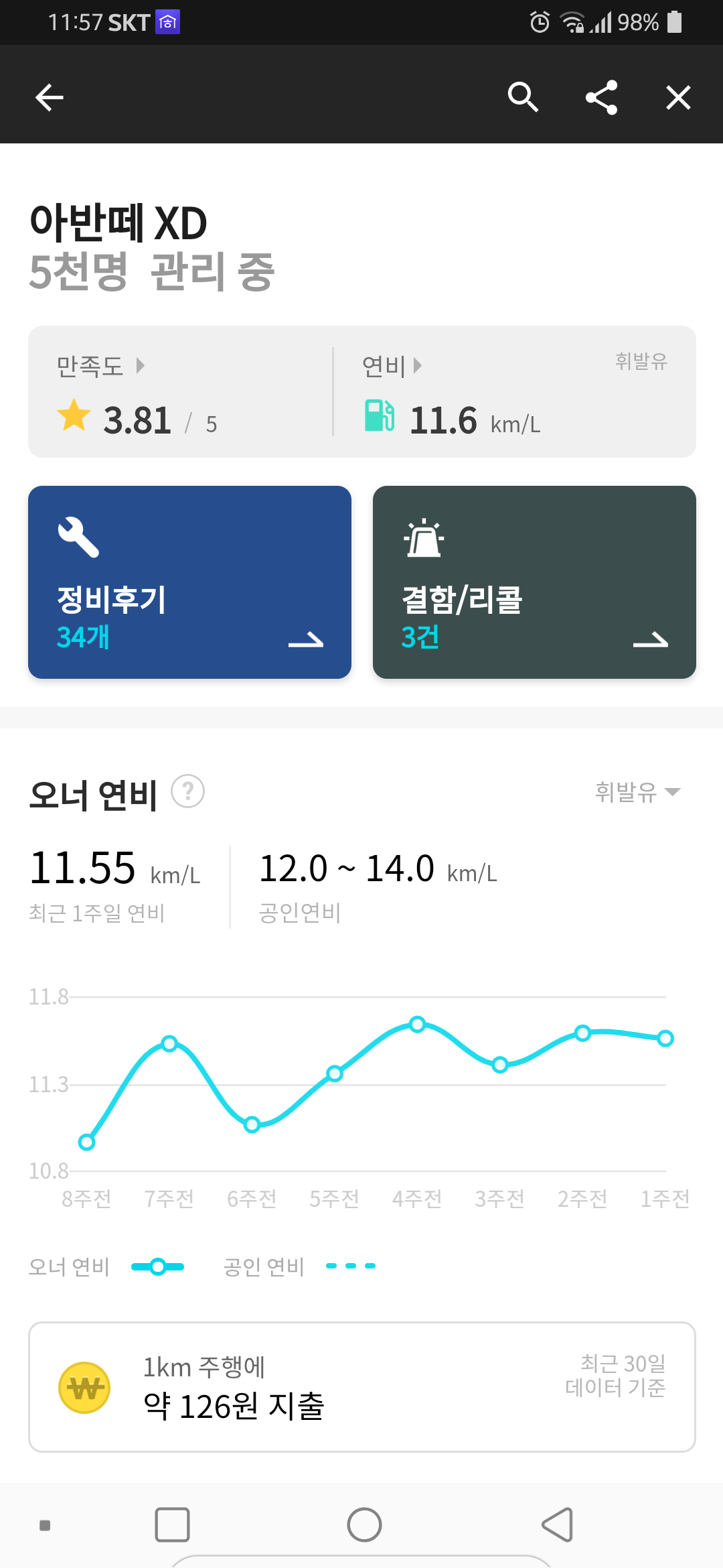 다만 차량 컨디션이나 오너 성향에 따라 연비는 천차만별이니 참고만 하세요.