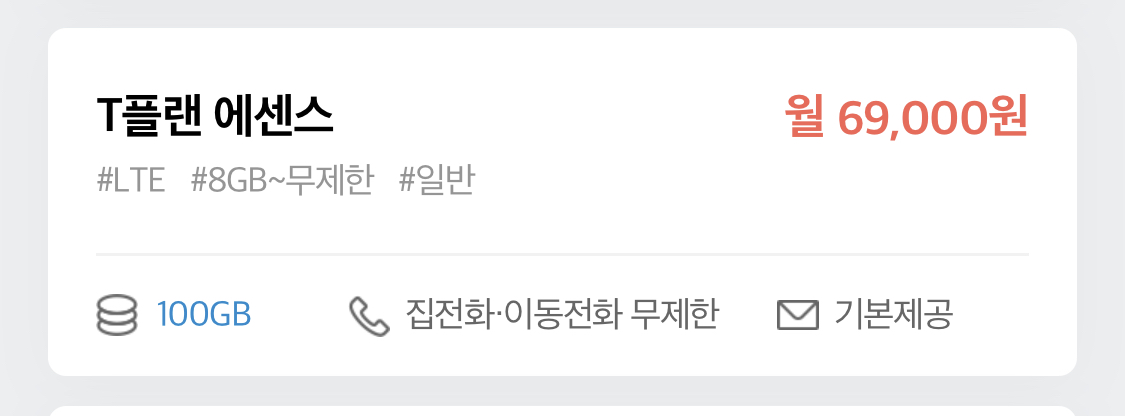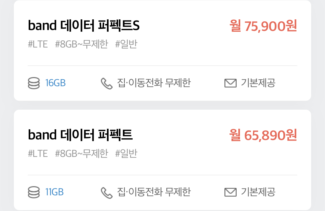 가족 결합 있어서 skt을 꼭 써야 하는데 통화랑 문자는 필요없고 한달에 10기가 정도는 사용하는것 같습니다. 지금 6.5기가 요금제 + 리필쿠폰으로 연명하고 있는데 데이터가 더 많은 요금제 찾아보니 T플랜 시리즈랑 밴드 데이터랑 가격대비 데이터 제공량이 엄청 차이 나네요? 이렇게 데이터 차이가 많이 나는 이유가 뭔가요? 그리고 혹시 괜찮은 요금제 있으면 추천해주세요. 0