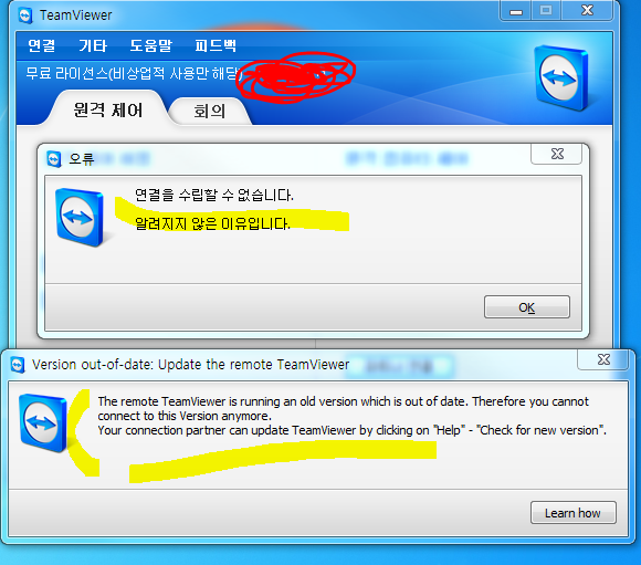 제가 팀뷰어 프로그램을 쓰는데 팀뷰어 연결 시도 할때마다 실패합니다.