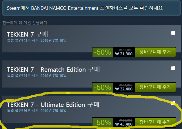 스팀에서 철권 세일해서 Ultimate Edition으로 샀거든요.. 캐릭터 다 나오고 옷 많이 있는거..