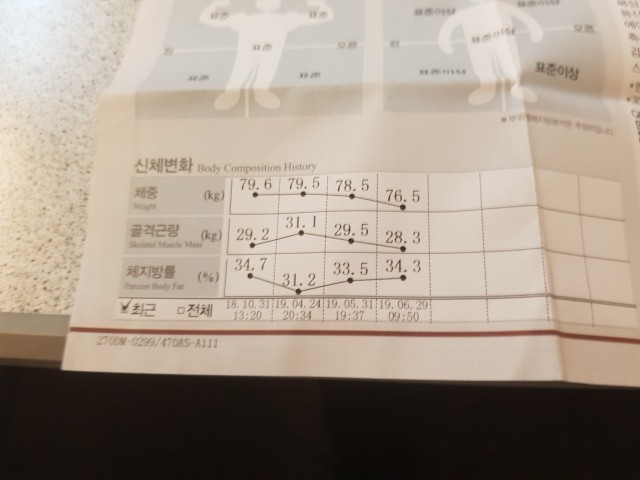 몸무게는 제대로 줄어들고 있는것 같은데,  근육량이 줄어들고 있는 반면, 체지방비율은 늘어나고 있네요 ;;;