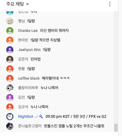 지난번 롤드컵 4강에서도 저런걸 본거 같은데... 유튜브 채팅과 연계되는 다른 서비스가 있는건가... 궁금합니다 0