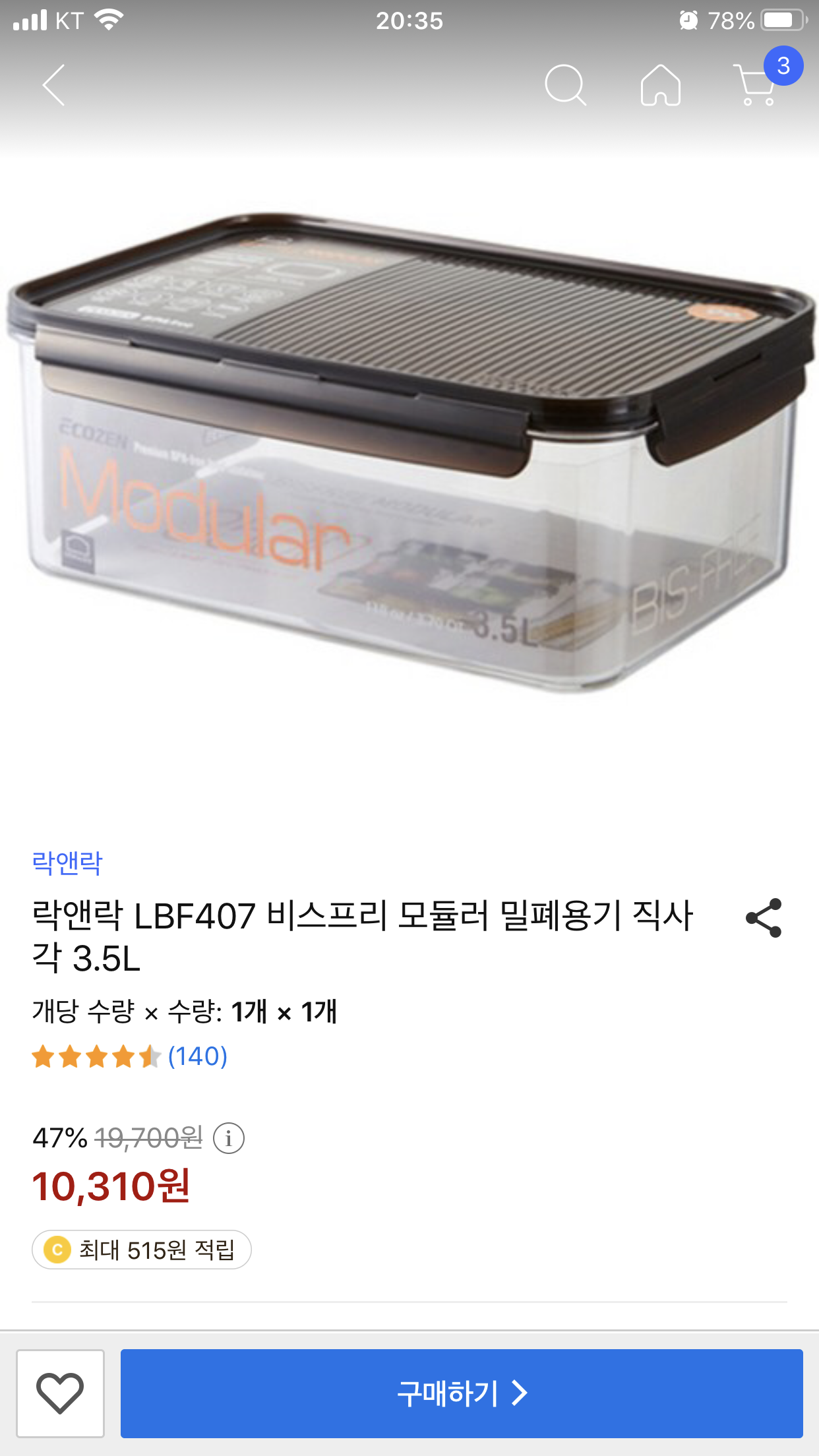 맨날 가져다 주는거만 먹다보니 이런쪽에 감이 없어서요. 올해는 형수가 김장을 안하신대서 사먹을거거등요. 그래서 3키로를 주문했어요. 그런데 김치통이 없네요... 이사하면서 다 버렸나봐요. ㅜㅜ 락앤락 통을 사려는데 어렴풋이 1kg = 1l 기억이나서 3.5l 사려거등요. 혹시 작을까요? 작으면 어카죠? 0