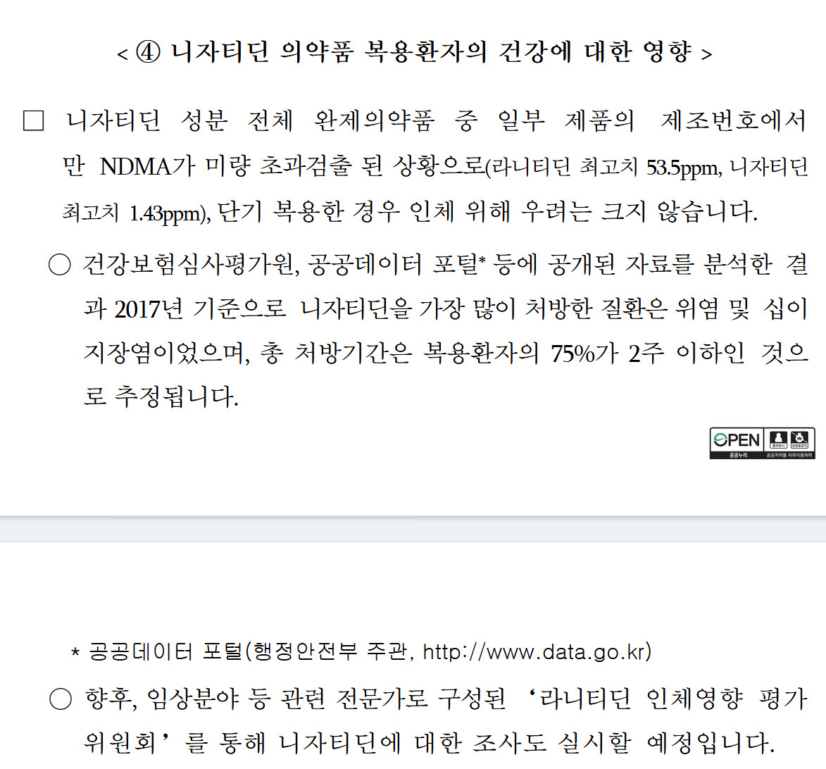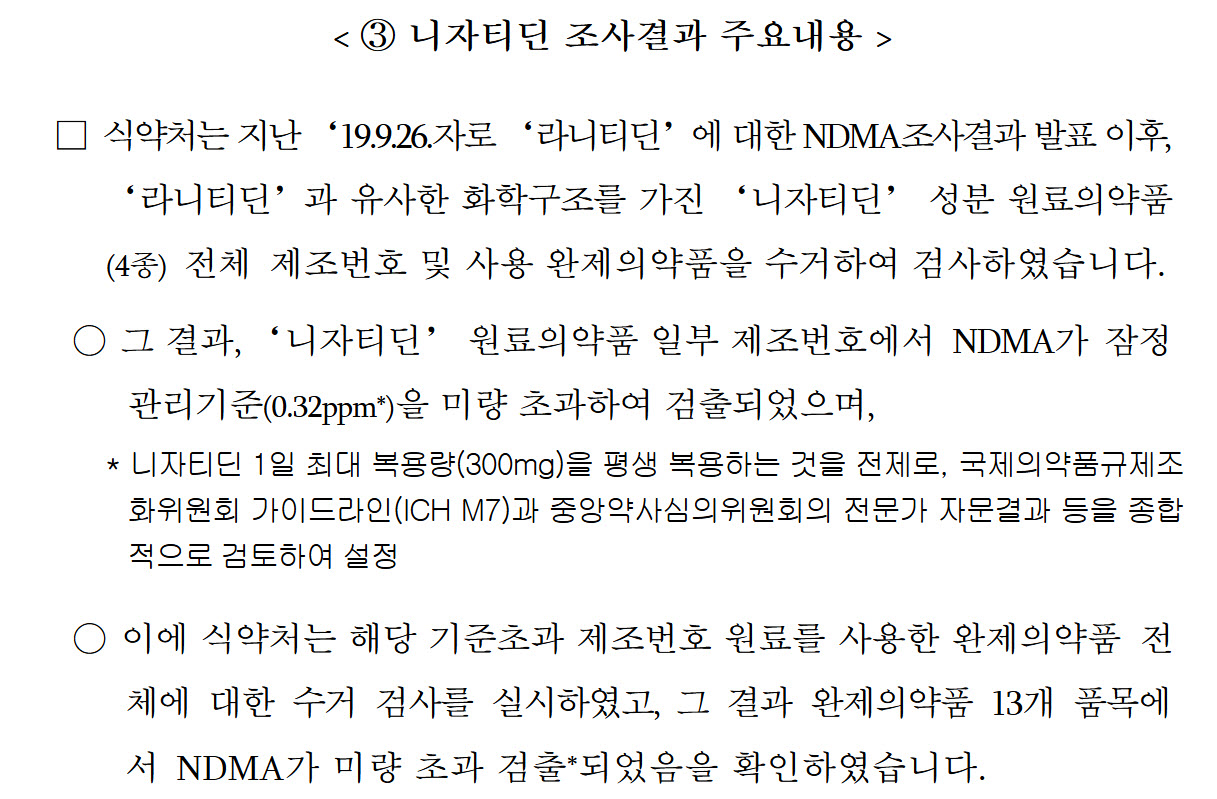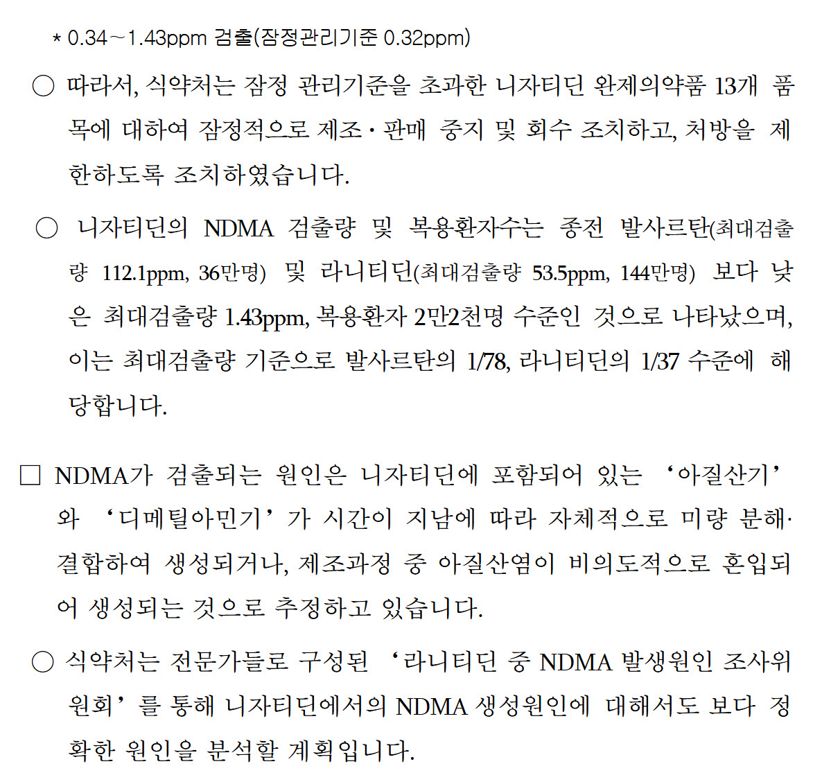 | Subject | 위장약 식약처 13개 제외 니자티딘 먹어도 되는지요? |