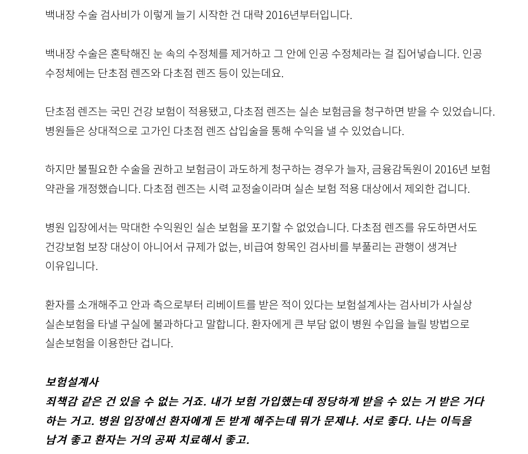 60대 어머니가 백내장 판정을 받으셨다고 하시네요. 약물치료(?) 등으로 치료가 될 수 있으면 좋겠는데 수술을 해야할 것 같다고 하십니다. 그래서 병원을 좀 알아보려고하는데 간단히 검색을 해보니 백내장 수술은 의료보험이 적용돼서 포괄수가제 대상이라고 하는데 그러면 대형/대학 병원을 가도 수술비나 기타 치료비는 큰 차이가 없을까요? 집근처 대형 병원이 강동 경희대병원인데, 여기 안과는 어떤가요? 혹은 강동 송파 지역쪽에 추천해주실만한 병원 있나요? 0